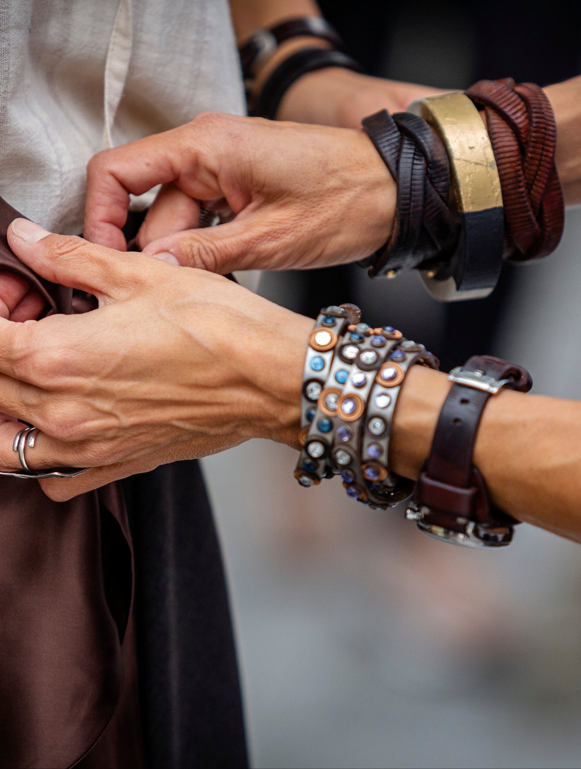 Crafted from genuine leather, the MOON bracelet has a timeless appeal that complements any outfit. The inclusion of bright colored stones adds a touch of elegance and makes your day a celebration, making it a versatile accessory for various occasions . MOON embodies the perfect harmony between the texture of natural leather and the charm of carefully selected stones. The bracelet can be adjusted according to different hand sizes. Circumference can be 18cm/19cm/20cm